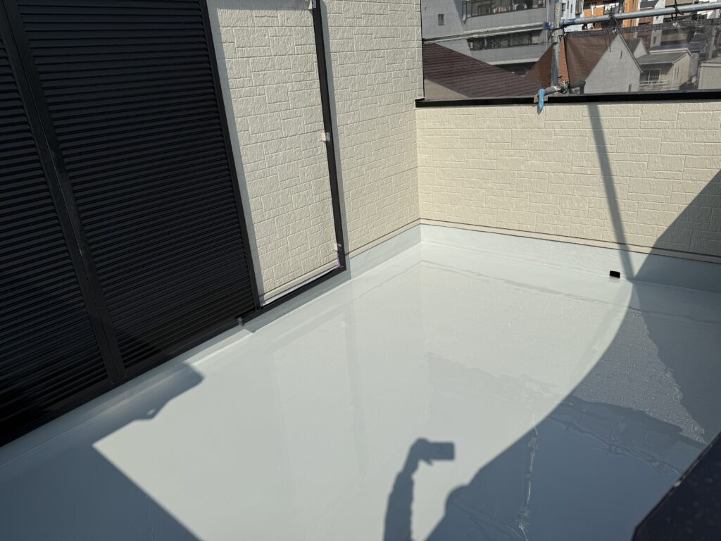 液体状のウレタン樹脂を何層も塗り重ね、継ぎ目のないゴム状の防水層を作る工法です。